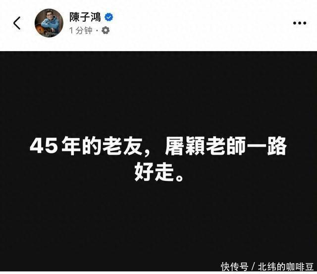 刚刚,著名音乐人、 台湾欢喜音乐唱片公司总经理陈子鸿 确认了 著名音乐人屠颖离世的消息 陈子鸿这样写道: “45年的老友, 屠颖老师一路好走。”